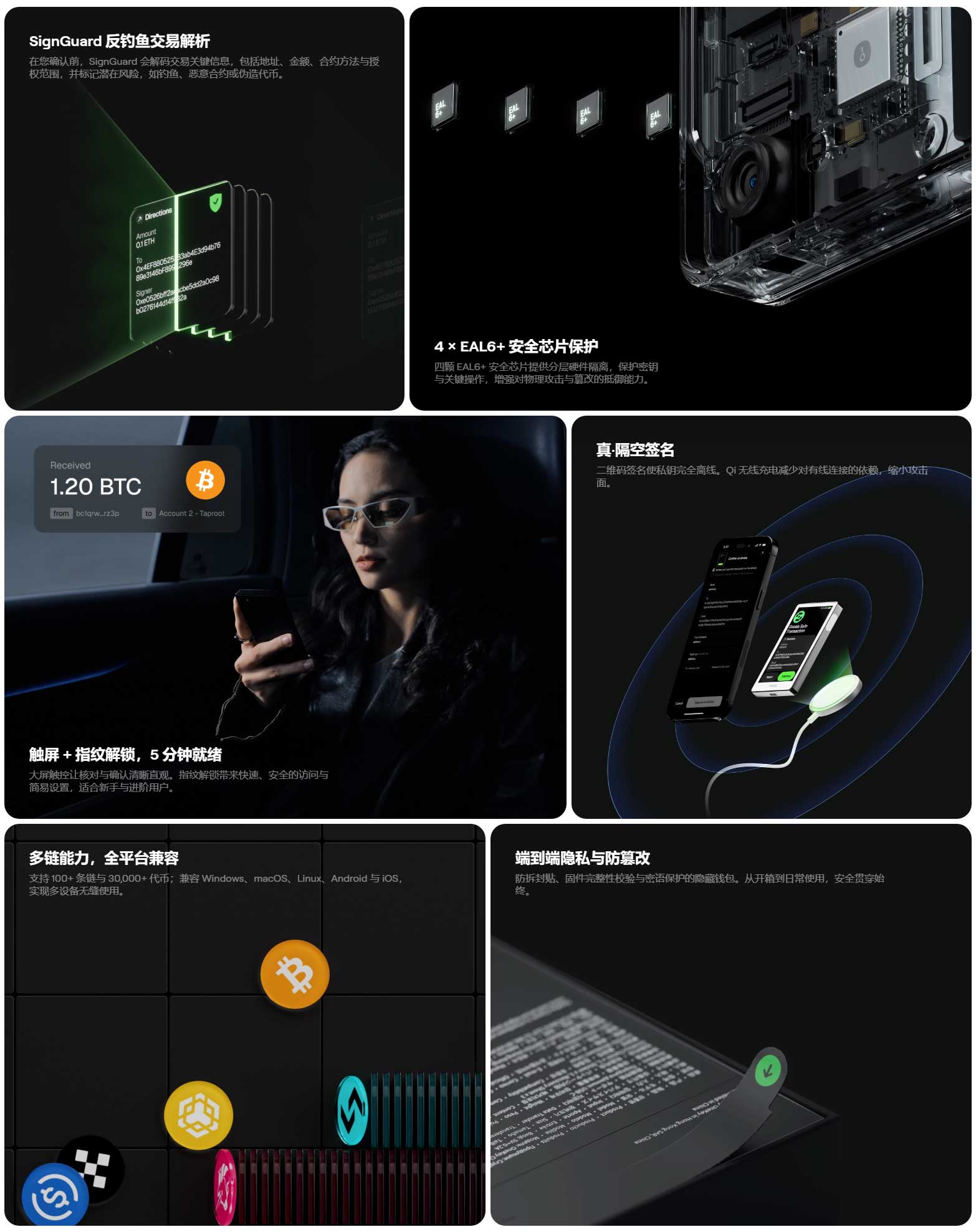 安全。迅捷。 史上最先进的冷钱包。原厂保修只换不修。设备出现故障时,我们为您寄送全新设备。硬件钱包可长期使用,保修也应如此。